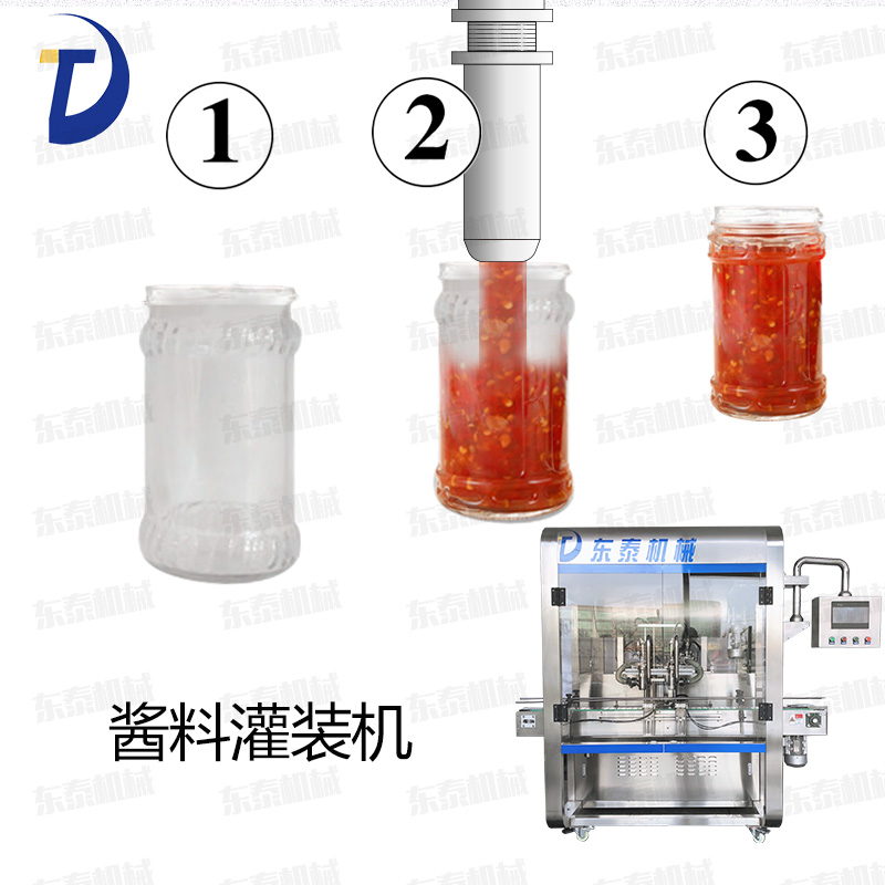 辣椒醬灌裝機采用活塞式灌裝原理,適用于調(diào)味品中帶顆粒并且濃度較大的辣椒醬、豆瓣醬、花生醬、香菇醬、果醬、牛油火鍋底料、紅油火鍋底料、蝦醬等較為粘稠醬類的灌裝。